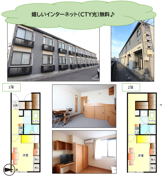 | 設備 | 宅配ボックス・靴箱・モニターホン・浴室トイレ別 ・2口IHコンロ・浴室乾燥機・洋間テーブル,イス・TV 寝台・姿見・エアコン1基・収納・洗濯機 電子レンジ・冷蔵庫・インターネット(CTY光)使用無料 公共下水 |